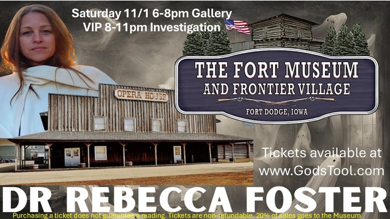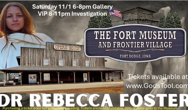 1st - Fort Dodge Ft Museum and Opera House - Gallery Reading 6-8pm or VIP for Gallery, Pizza & Investigation- 1 Museum Rd, Fort Dodge, IA 50501